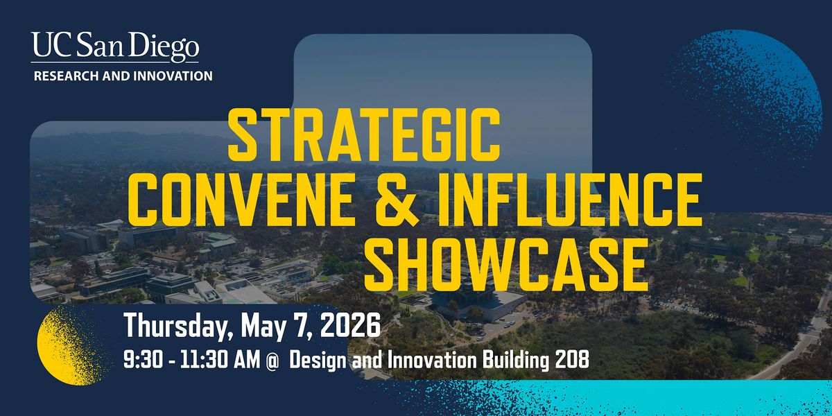 Join the Office of Research and Innovation for a showcase of interdisciplinary teams supported through the Strategic Convene & Influence Awards. The Convene and Influence program empowers faculty to build partnerships across disciplines, convening campus stakeholders to advance agendas that shape future research, policy, and practice aligned with UC San Diego’s strategic research themes.