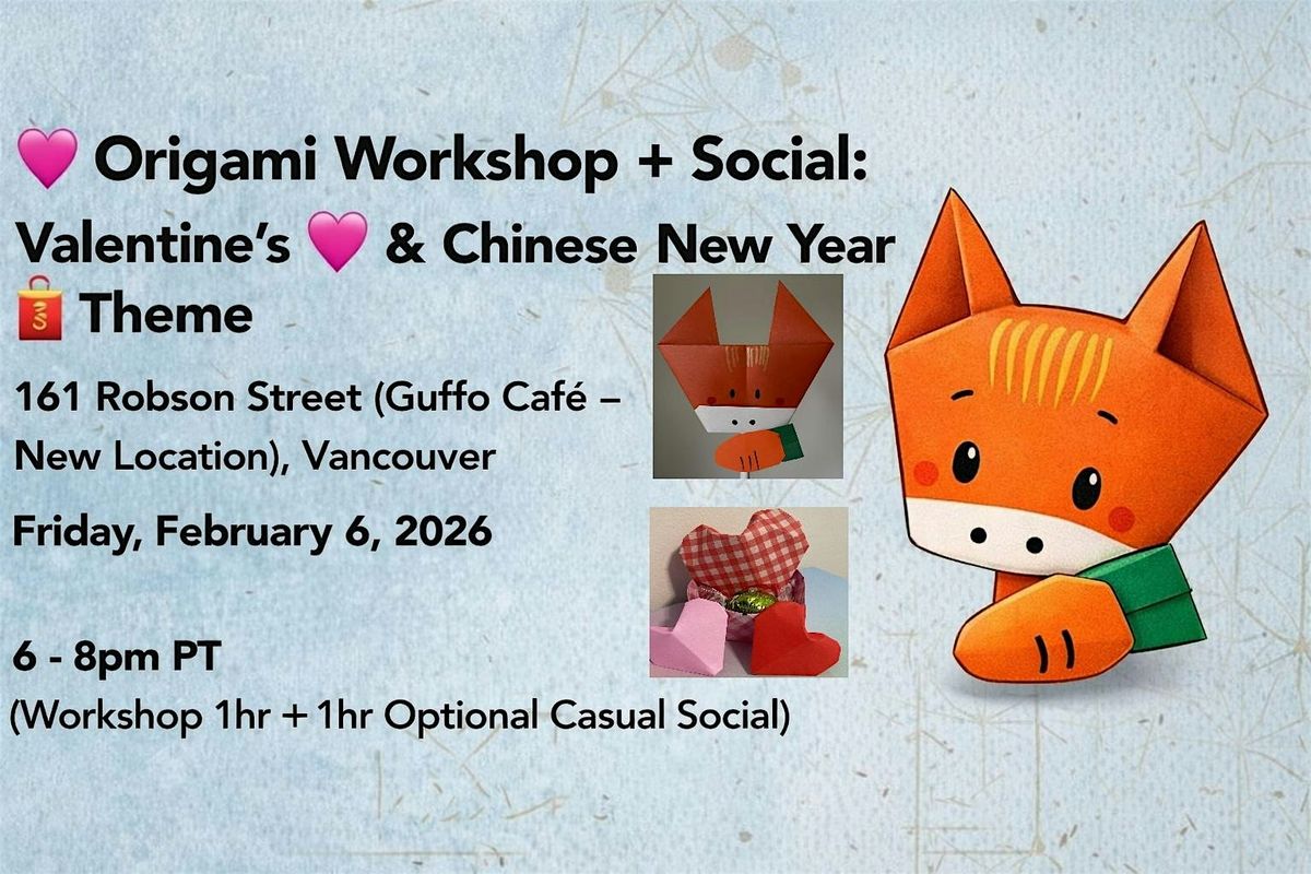 Join us for a cozy, one-of-a-kind Valentine’s + Chinese New Year–themed Origami Party — the perfect blend of creativity, culture, and community.