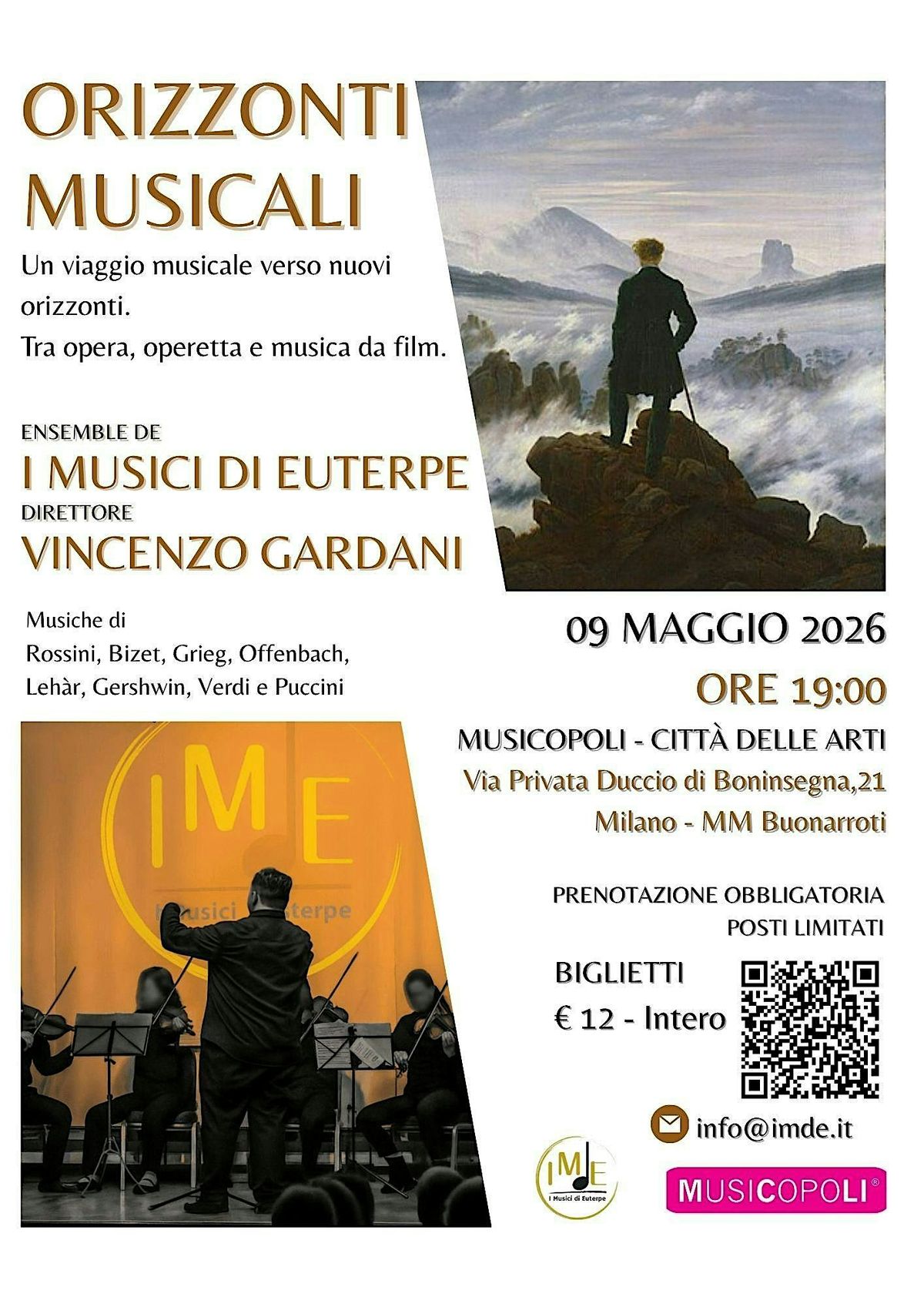 Il prossimo 9 maggio 2026 alle ore 19:00, presso Musicopoli – Città delle Arti, andrà in scena il concerto “Orizzonti Musicali”, appuntamento conclusivo della stagione musicale de I Musici di Euterpe, ospiti della rassegna artistica di Musicopoli.