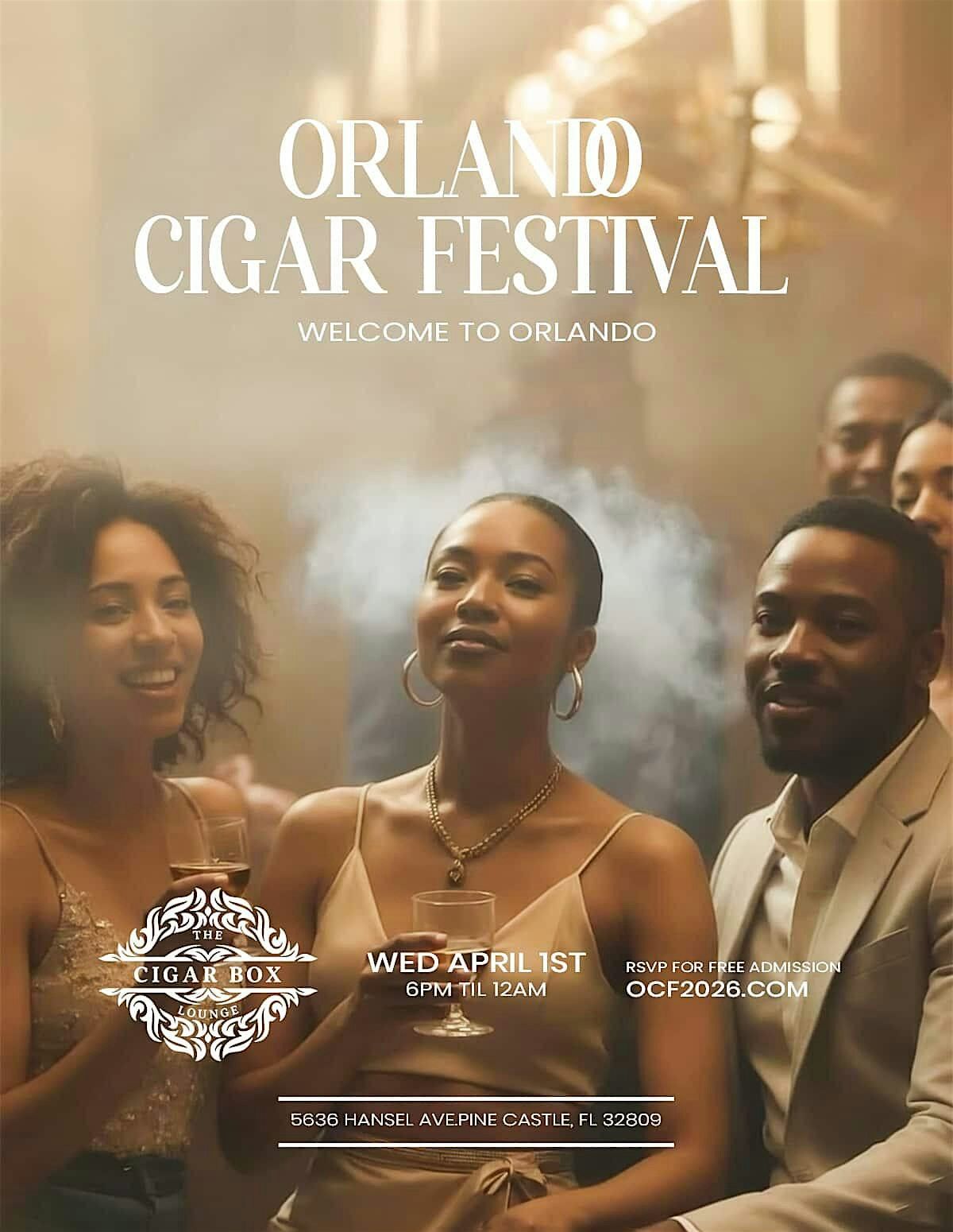 Join us for a evening kicking off Orlando Cigar Festival 2026 at Cigar Box Orlando Wednesday April 1st 6pm till 12am. Free entry all night.