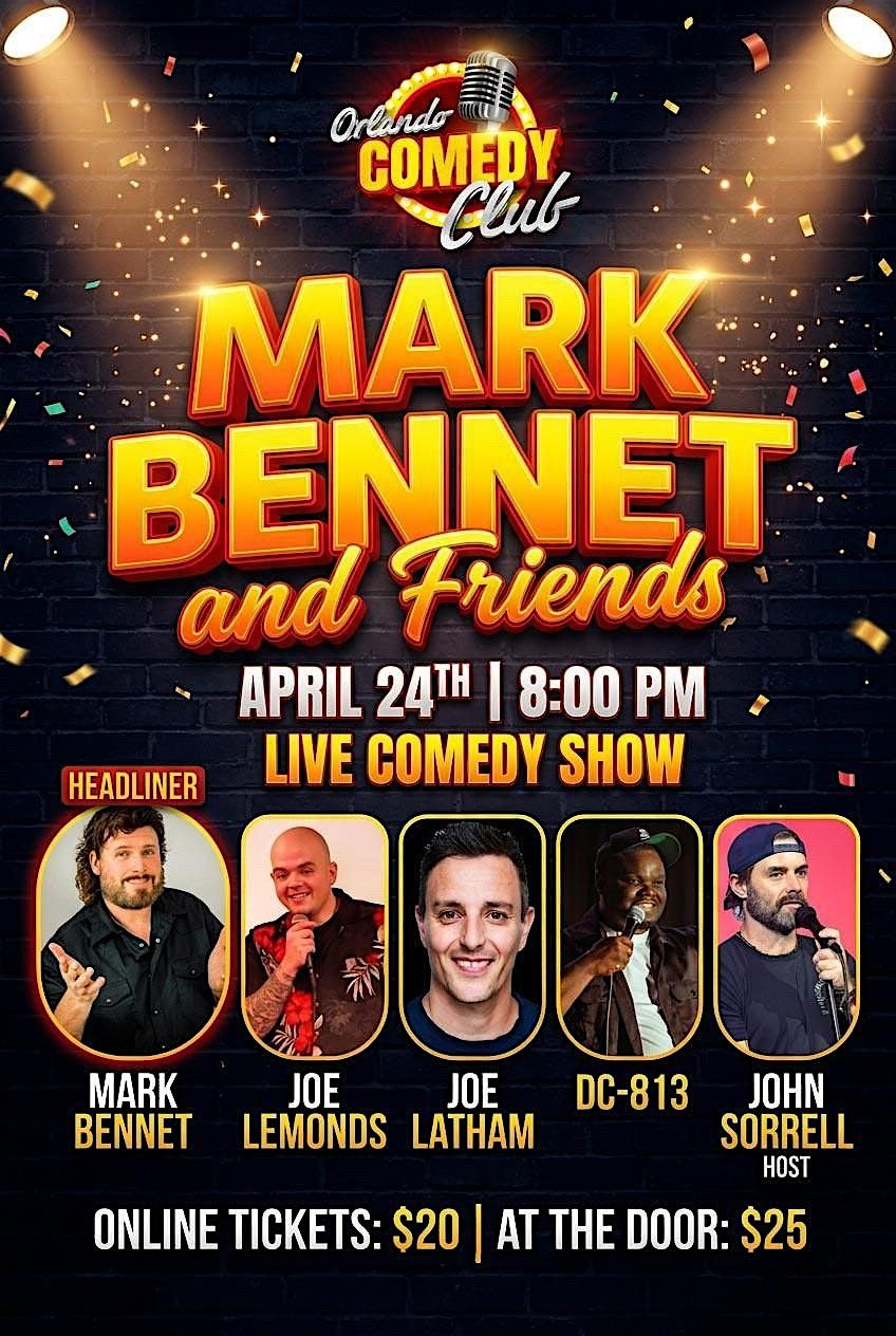 Get ready for a fun night of live stand-up at Orlando Comedy Club on April 24 at 8PM. Headliner Mark Bennet leads a strong lineup featuring Joe Lemonds, Joe Latham, and DC-318, with John Sorrell hosting the show. Expect a mix of sharp jokes, unique styles, and plenty of laughs from start to finish—perfect for a night out with friends or a casual date.