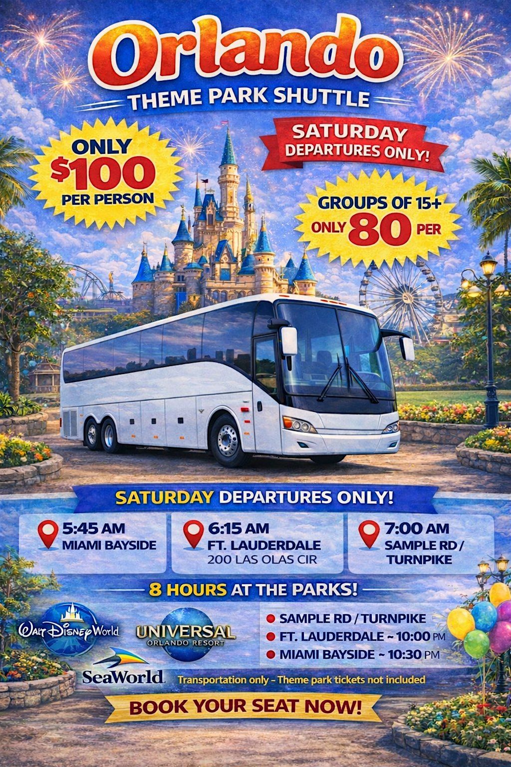 Relax, enjoy the ride, and spend the day exploring Orlando before returning to South Florida in the evening.