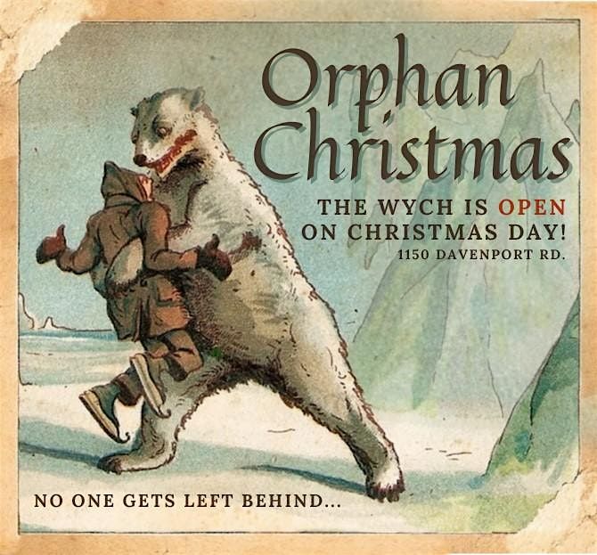 On Christmas Day, if your family is far away, complicated, imaginary, or simply unavailable — you are invited to join us for Orphan Christmas at The Wych.