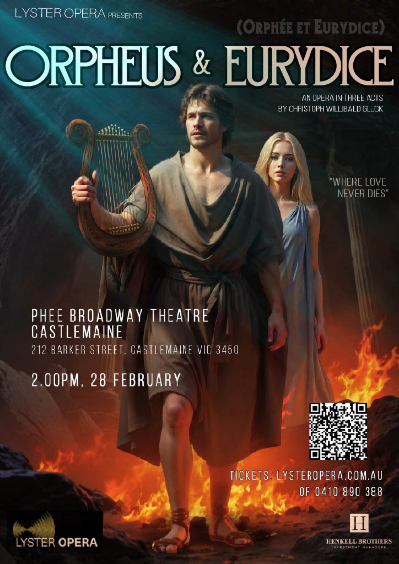Lyster Opera returns to Castlemaine with Gluck’s timeless masterpiece Orpheus and Eurydice—a moving tale of love, loss and the power of music.