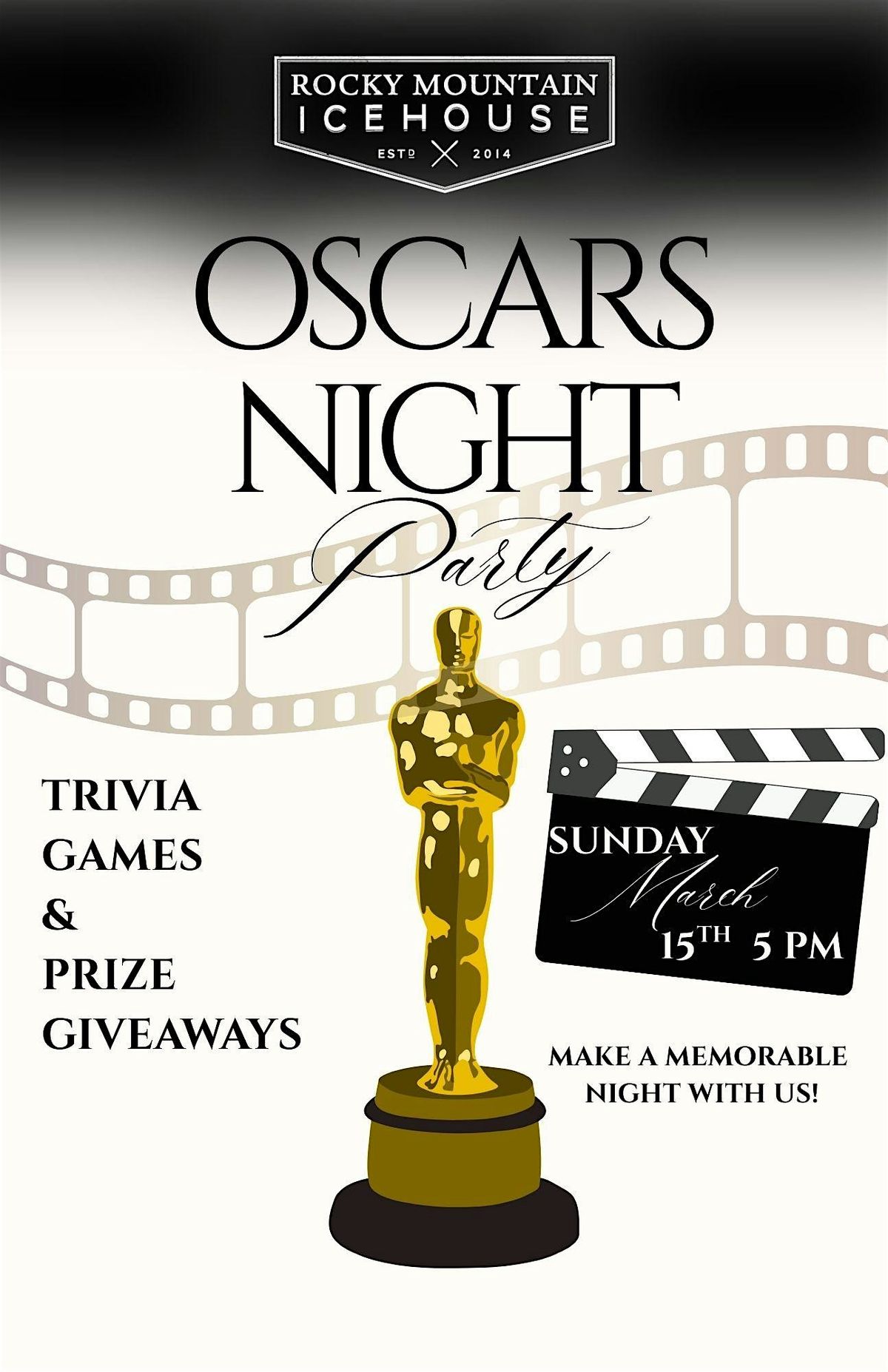 Celebrate the Academy Awards in style at The Icehouse on Sunday, March 15th at 5 PM. Dress to impress, grab your crew, and get ready for an evening filled with glitz, glamour, and a little friendly competition.