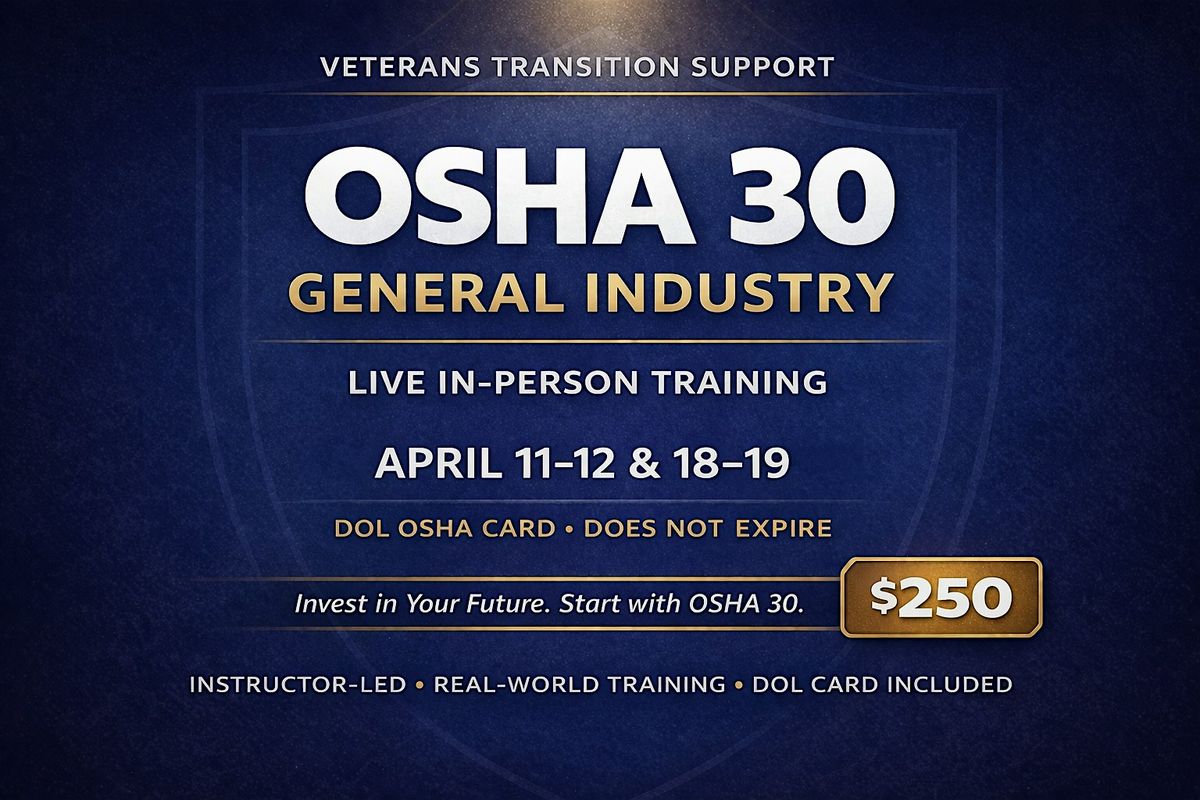 - Upon completion, participants receive an OSHA 30-Hour Safety Card, a federally recognized credential valid in all 50 states.