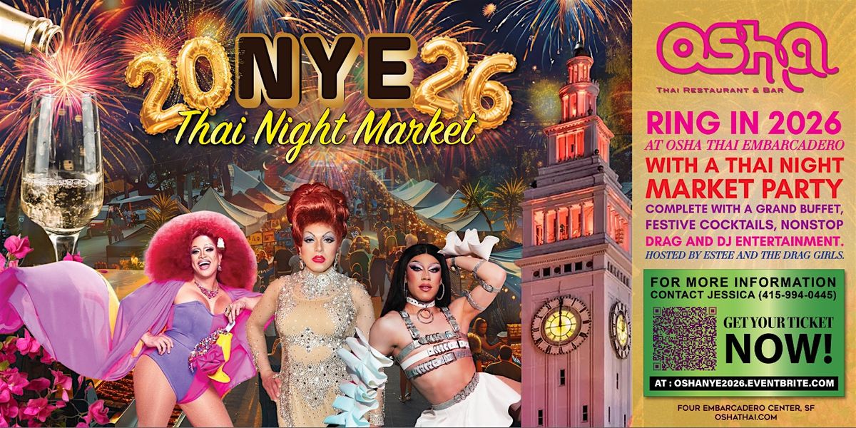 Immerse yourself in the energy of Thailand’s nightlife scene. Enjoy a grand buffet, drag performances, complimentary drinks, a midnight champagne toast, and a prime waterfront view of San Francisco’s fireworks
