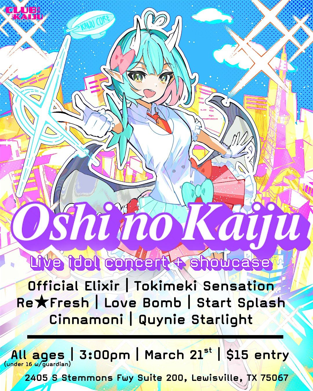 This one of a kind concert debut will feature some of our close and new friends to help set the tone as we re-invite ourselves into the idol world of DFW. Gather your pen lights, friends and family. Make way for the wotagei crews. And ready in line for your checki at their merch booths post performance! See you soon!