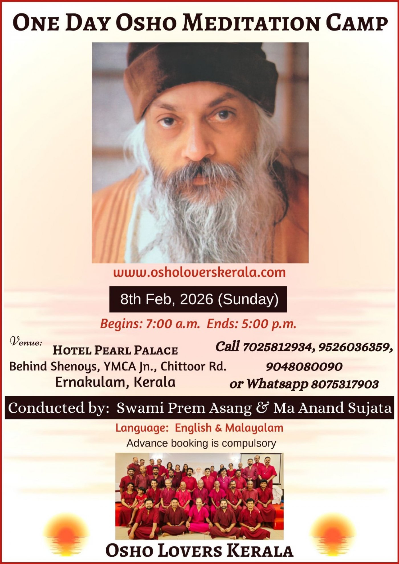 Embark on a journey of self-discovery and inner peace at the Osho Meditation Camp at Hotel Pearl Palace in Ernakulam, Kerala, India. Elevate your spiritual well-being through the transformative Osho meditations that will be practised during the event.