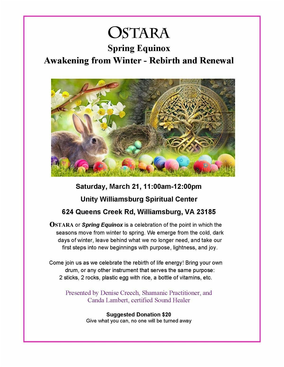#Ostara #SpringEquinox #Rebirth #Renewal #UnityWilliamsburg #NewBeginnings #SpiritualCommunity
