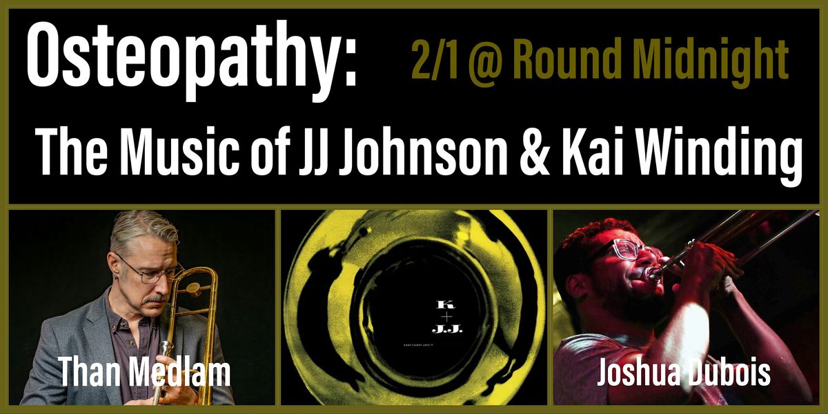 Join us at Round Midnight in Edmond on Sunday, Feb 1st! Experience a night of world class local jazz, honoring the legendary JJ Johnson & Kai Winding! We'll have both Than Medlam and Joshua Dubois for this double trombone feature!