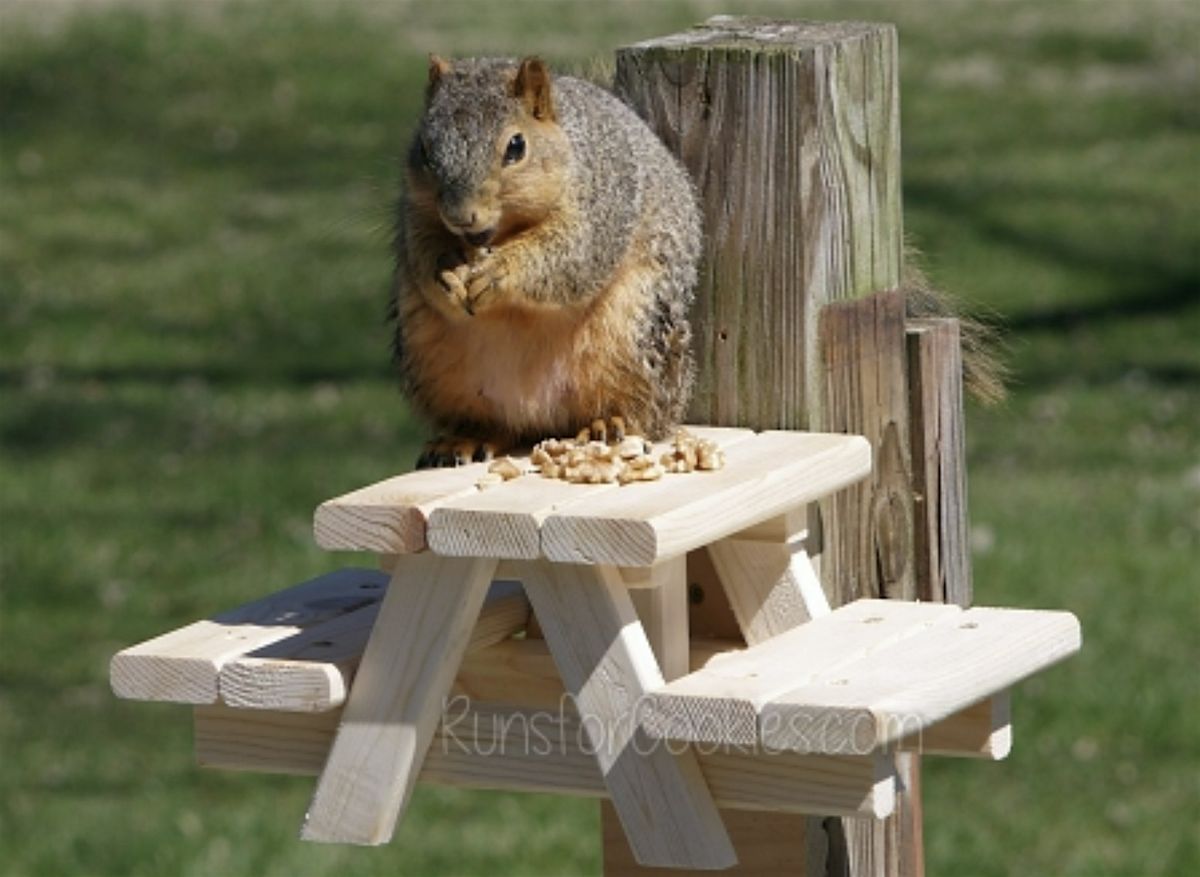 In this 1-day workshop for children ages 9-12, young builders will have fun putting together a picnic table for squirrels. Participants will learn how to measure, understand angles and put together a fun finished product they can be proud of. Plus, it's fun to watch squirrels come and sit at your tiny picnic table and eat seeds and nuts!