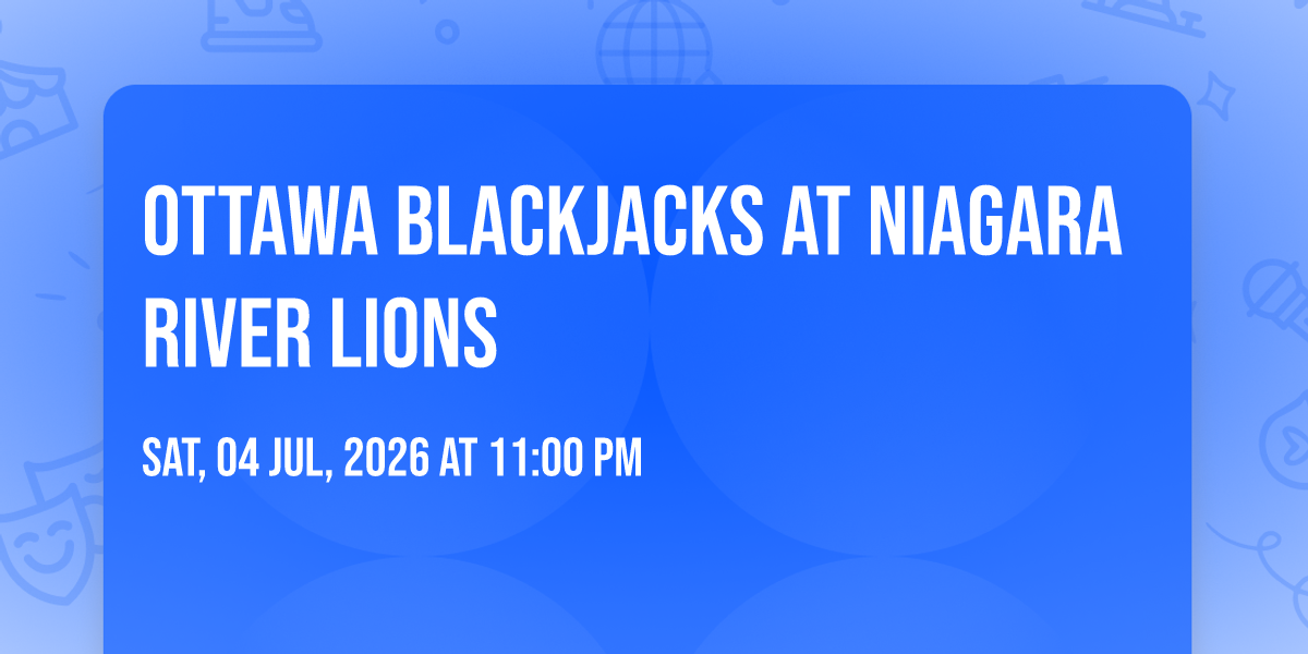 📍 Location: 43.15642, -79.244🎉 Welcome to Ottawa Blackjacks at Niagara River Lions, where the impossible becomes possible and dreams take flight! 🏛️ Join us at Meridian Centre in the heart of St. Catharines, ON for an event that will redefine your expectations. 📅 On July 4th, 2026 at 11:00 PM, witness the transformation of space and time into something truly magical. ✨ It's a curated experience combining the best of innovation, entertainment, and community spirit, creating moments that will be remembered for years to come. Whether you're a first-time visitor or a seasoned enthusiast, prepare to be amazed. 🎊 Book now to ensure your place in this unforgettable experience!