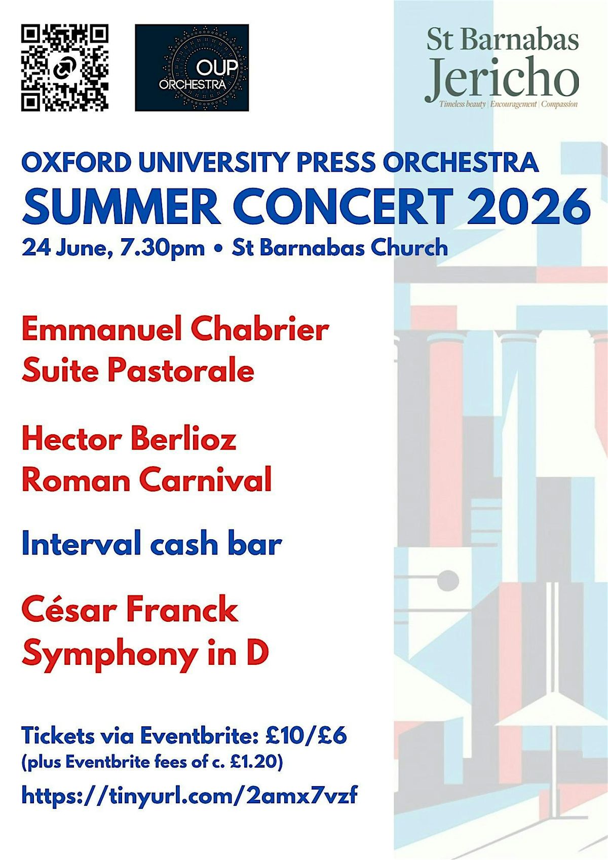 Get ready for exciting classical music, reasonably priced wine, and great company. Enjoy this long summer evening with the passion and talent of the OUP Orchestra and their conductor Emily Singh.
