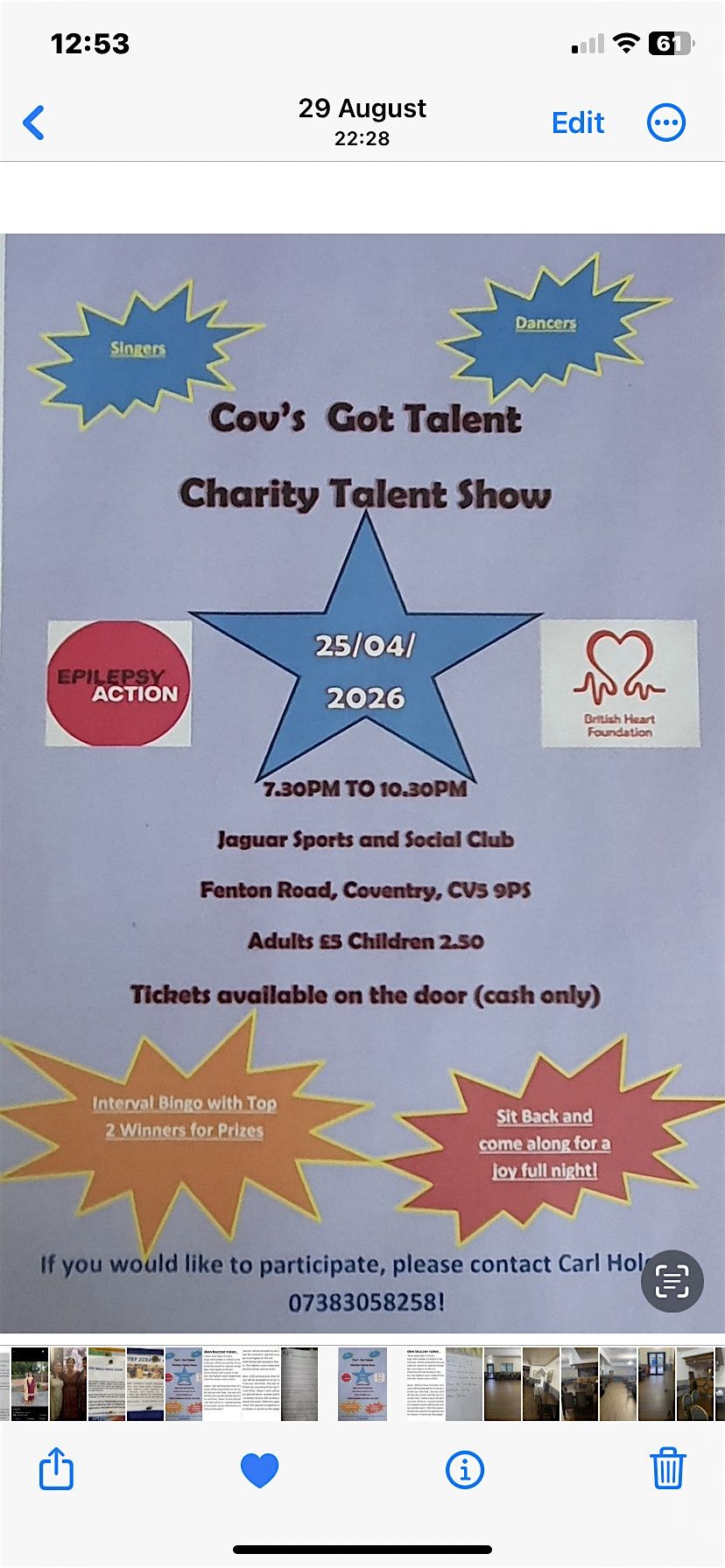 It's Cov's Got Talent in a BGT style show! From Singers , dancers and poetry! for Epilepsy Action and The British Heart Foundation!About this Event