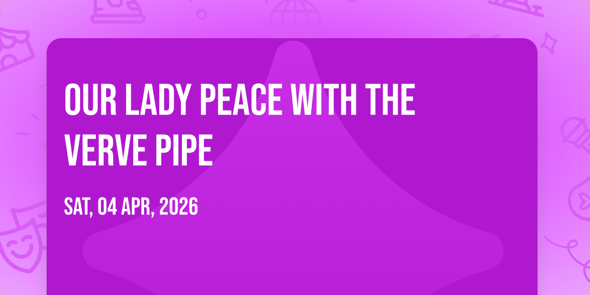 📍 Location: 42.8695, -78.8725🎉 Welcome to Our Lady Peace with The Verve Pipe, where the impossible becomes possible and dreams take flight! 🏛️ Join us at Buffalo RiverWorks in the heart of Buffalo, NY for an event that will redefine your expectations. 📅 On April 4th, 2026 at 12:00 AM, witness the transformation of space and time into something truly magical. ✨ It's a curated experience combining the best of innovation, entertainment, and community spirit, creating moments that will be remembered for years to come. Whether you're a first-time visitor or a seasoned enthusiast, prepare to be amazed. 🎊 Book now to ensure your place in this unforgettable experience!