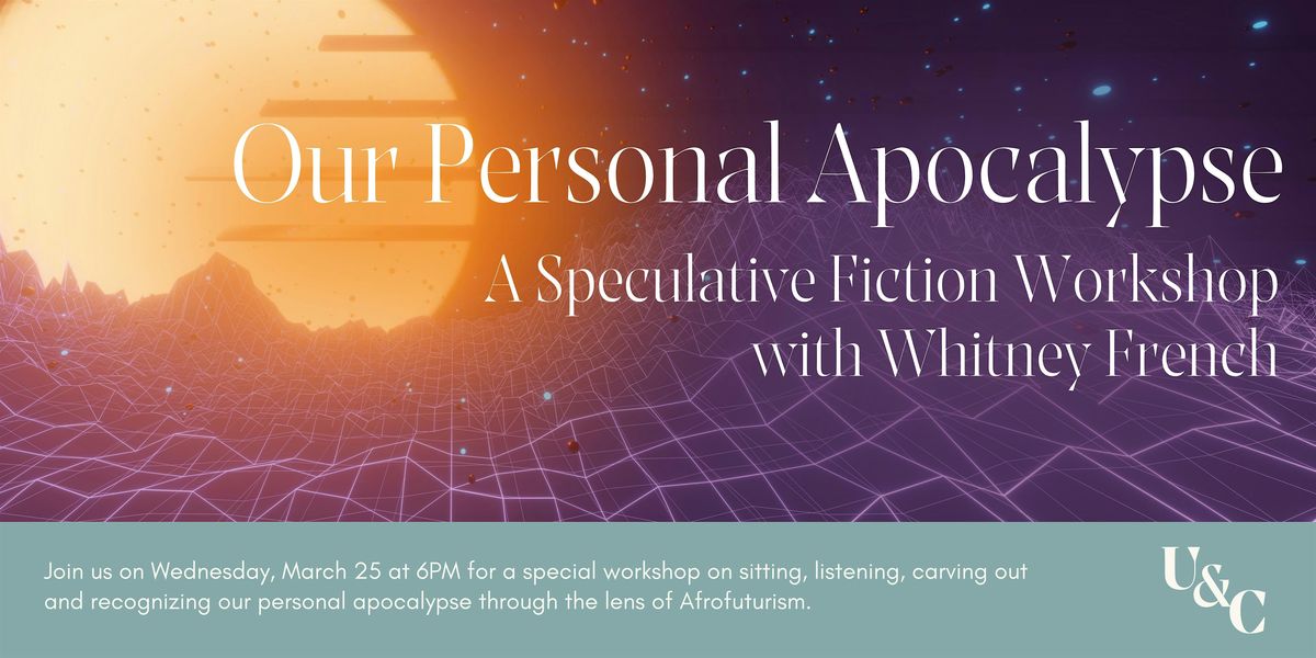The ending of a world also signals the beginning of a new one. Our Personal Apocalypse is a generative creative writing workshop focused on the act of sitting, listening, carving out, and recognizing our personal apocalypse through the lens of Afrofuturism.