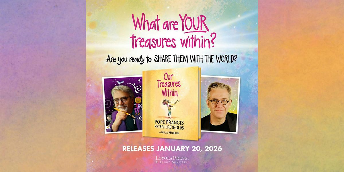 Twin brothers Peter H. Reynolds and Paul A. Reynolds celebrate the release of their new “picture book for all ages” created in collaboration with Pope Francis in this very special launch event. The Reynolds brothers will read from Our Treasures Within, share reflections on the book’s creation, and celebrate the power of creativity, kindness, and community. The presentation will be hosted at the Reynolds’ educational non-profit TLC Studios & Media Lab located at 390 Washington Street, next to Oscar’s. Tickets are $21.25 and include a copy of Our Treasures Within, and admission for one adult & one child. Book signing to follow.