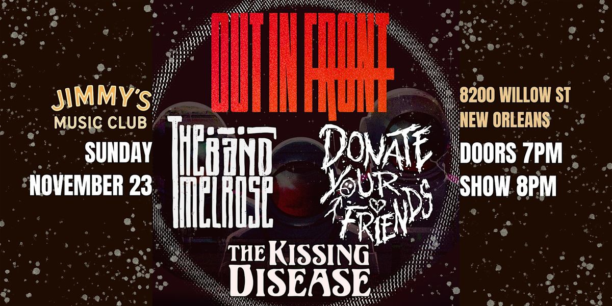 Join us for a night of live music with Out In Front, The Band Melrose, Donate Your Friends & The Kissing Disease.About this Event