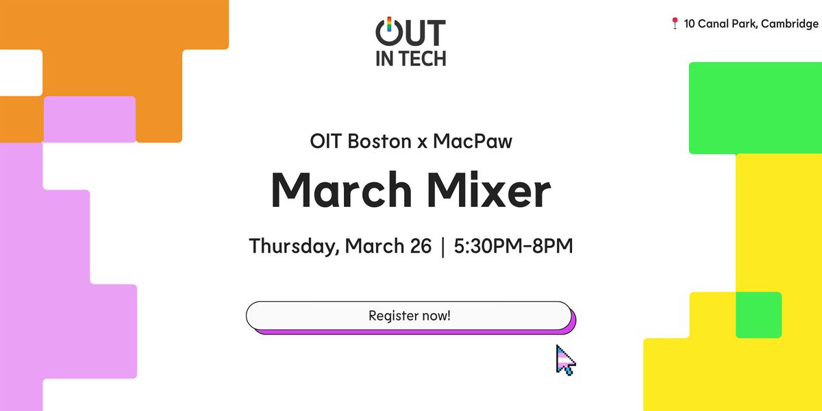 Out in Tech is excited to invite you to join us for our March Mixer filled with wonderful community, food, and drinks at MacPaw's Cambridge office on Thursday, March 26th from 5:30PM-8PM ET at 10 Canal Park.