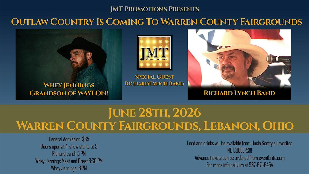 Welcome folks to the Outlaw Country event at Warren County Fairgrounds! Get ready for a night of boot-stomping music and good ol' country vibes. Join us on June 28, 2026 at 5:00 PM (Eastern Time) and let's make some memories together. Yeehaw!