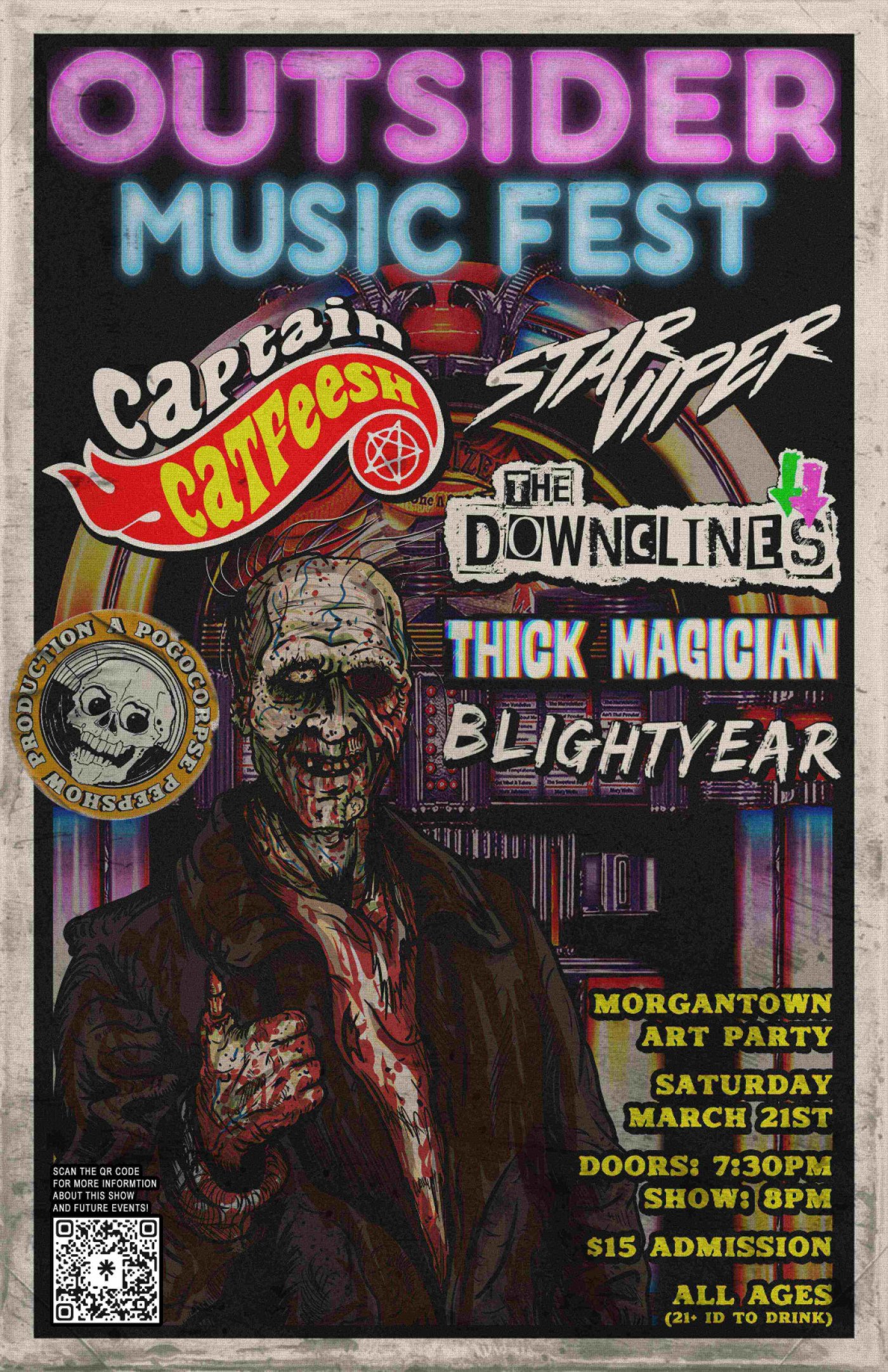 For this year’s iteration we are bringing back one of the O.M.F. vets - the grand return of Captain Catfeesh as a full band (and we intend on having a grand 20 year anniversary celebration for them). We also have lots of new blood to bring to you this year including locals Blightyear, Star Viper from Pittsburgh,Thick Magician also from Pittsburgh and for good measure we are bringing in The Downclines from Roanoke,Virginia. GET READY,IT’S GONNA GET WILD AND LOUD SO BETTER BRING THOSE EARPLUGS MY PEEPS!!!