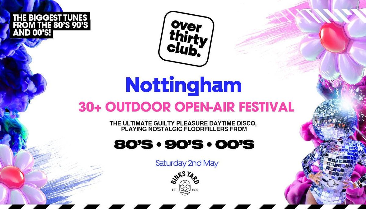 WELCOME TO THE OVER 30 CLUBTake a trip down memory lane with us with the ultimate over 30s Outdoor Open Air festival this May 2026 at BINKS YARD Nottingham. Get ready for a nostalgia-packed evening covering bangers from the 80's 90's and 00's in an eclectic night that wraps up by 10 PM!