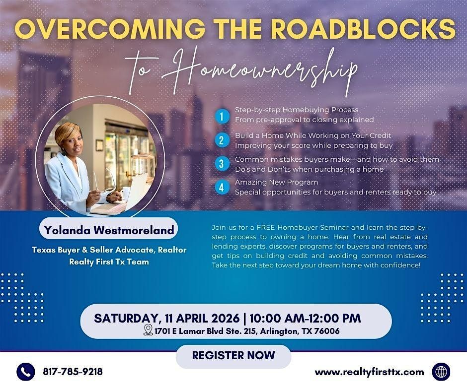 Free Homebuyer Seminar: Learn how to buy a home, build credit, and access programs to make homeownership possible.