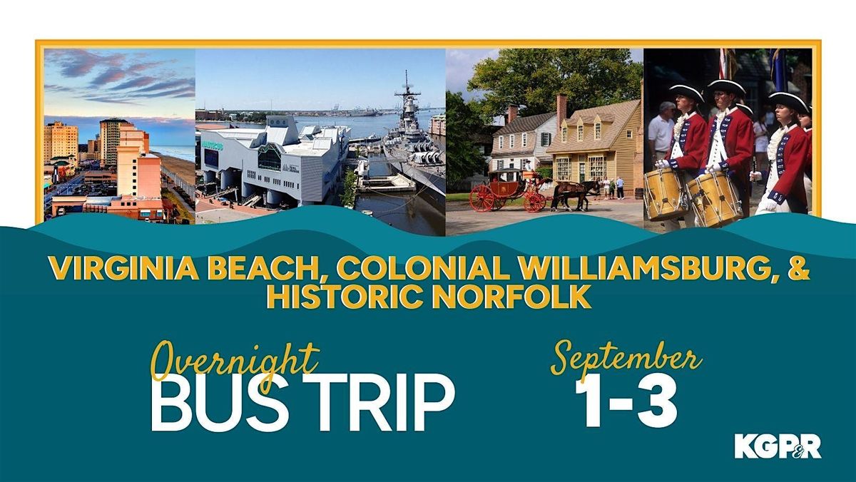 We’ll depart King George at 8:00 AM on Tuesday, September 1st, and return on Thursday, September 3rd.