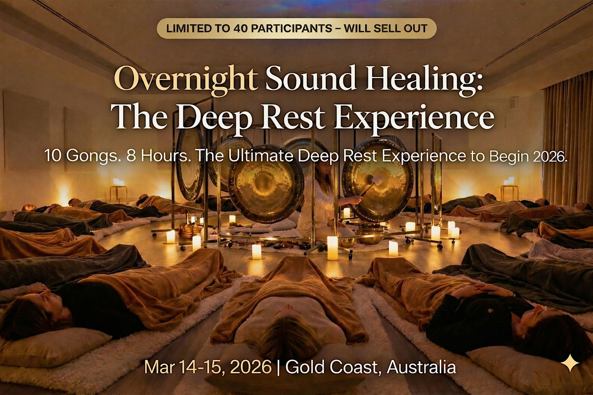 This is an 8-hour overnight sound immersion featuring 10 gongs, held in a calm, professionally facilitated group space.