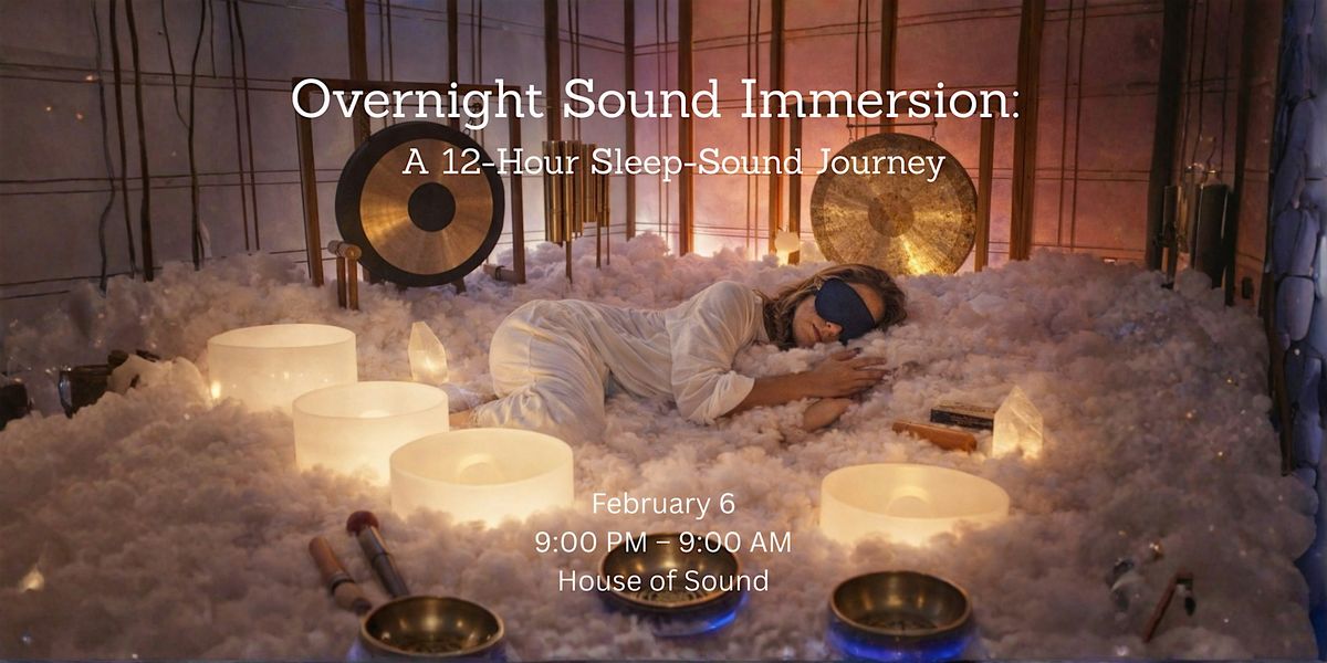 From 9:00 PM until sunrise, you’ll be held inside a continuous soundscape created to support sleep, dreaming, and nervous-system balance. The evening begins with a guided sound journey to help you land in your body, slow the mind, and gently transition into rest. From there, sound continues throughout the night — subtle, immersive, and intentional.