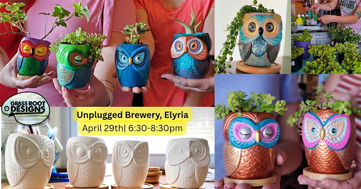 Paint, plants, beer , and friends! Design your own owl planter with us. 1st drink included.