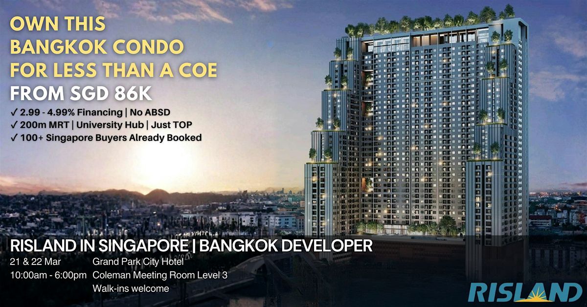 Meet two of Bangkok's best-value freehold condos by RISLAND Thailand, starting from SGD 86K. Both move-in ready. No ABSD. Already booked by 100+ Singaporean buyers.