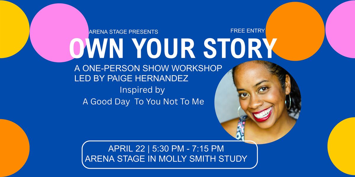 Join Arena Stage and guest Teaching Artist Paige Hernandez to do a one-person show workshop, inspired by A Good Day to You and Not to Me. Through writing and performance, these sessions celebrate the power and presence of the solo performer, offering local actors the opportunity to refine their monologues and deepen their ability to tell a complete story on their own.