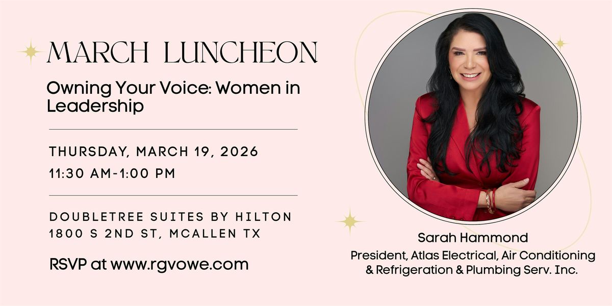 Join us for our March Luncheon featuring Sarah Hammond, President of Atlas Electrical, Air Conditioning & Refrigeration & Plumbing Services, Inc. as she shares her journey in leadership, business, and finding the confidence to use your voice.