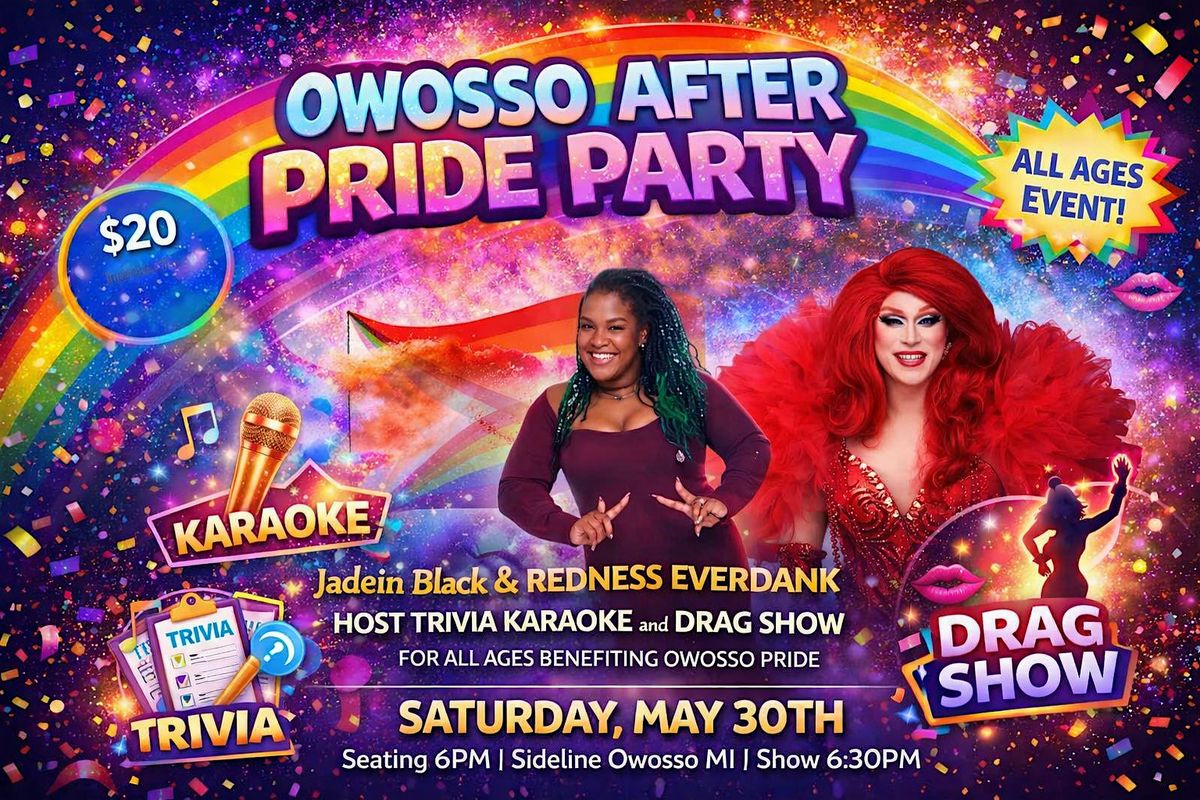 Join us at The Sideline Sports Bar Owosso on May 30, 2026 at 6:00 PM (EDT) for an epic night of karaoke, trivia, and a fabulous drag show! Whether you want to sing your heart out, test your knowledge, or just enjoy the vibes, this after party has got you covered. Bring your friends and let's make some unforgettable memories!