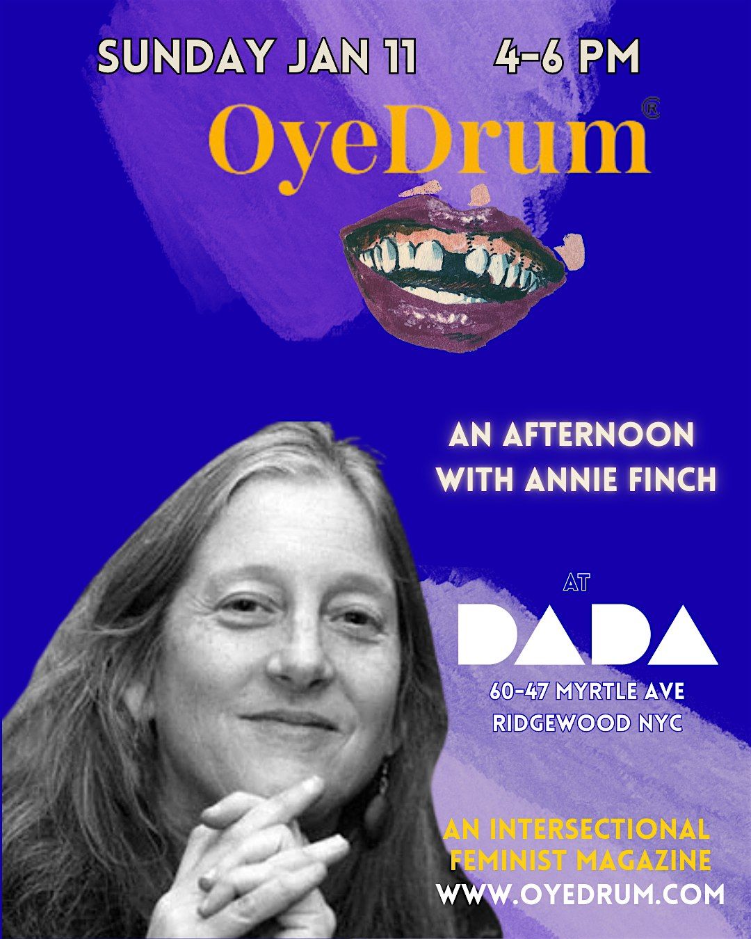 Join OyeDrum & Annie Finch for an afternoon of discussion on literature & intersectional feminism.