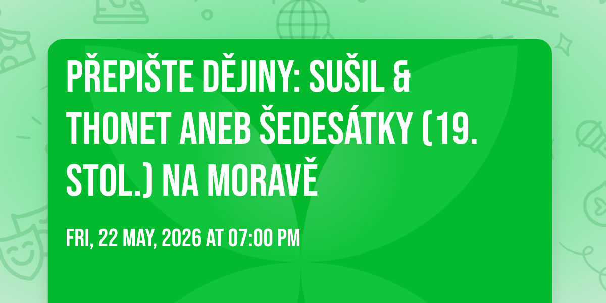 V předvečer tradičního Sušil happeningu zveme na živé vystoupení podcastu Přepište dějiny o dvou osobnostech spjatých s Bystřicí pod Hostýnem druhé poloviny 19. století."To, že lidové písně sbírala Němcová nebo Erben, to ví každý školák, ale co takový František Sušil? Jméno Thonet taky není neznámé, ale znáte osudy muže, který ohýbaný nábytek u nás začal vyrábět? Šedesátkám 19. století na Moravě se Michal Stehlík a Martin Groman z Přepište dějiny budou tentokrát věnovat v Bystřici pod Hostýnem."
