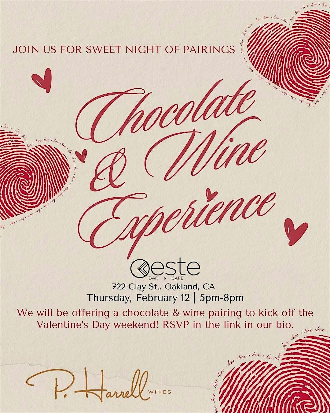 We're offering a chocolate and wine pairing at Oeste on Thursday, February 12 from 5pm to 8pm! The ticket includes a P. Harrell Wines tasting for 3 wines and chocolates. RSVP so we can have your wine and chocolate ready!