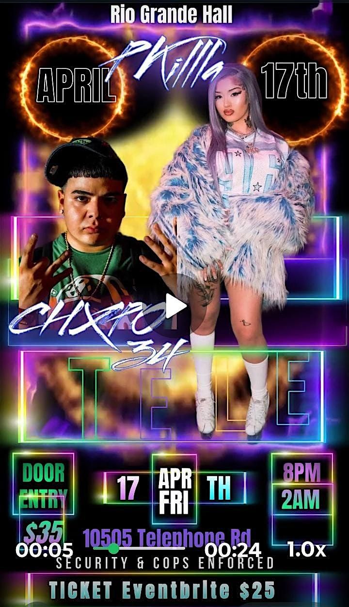 Join us on April 17, 2026 at 8:00 PM (Central Time) for an epic night at 10505 Telephone Rd. This is your chance to catch P KILLA bringing those Texas vibes all the way to Cali, alongside the one and only CHXPO34. Don't miss out on great music, good vibes, and an unforgettable in-person experience. See you there!