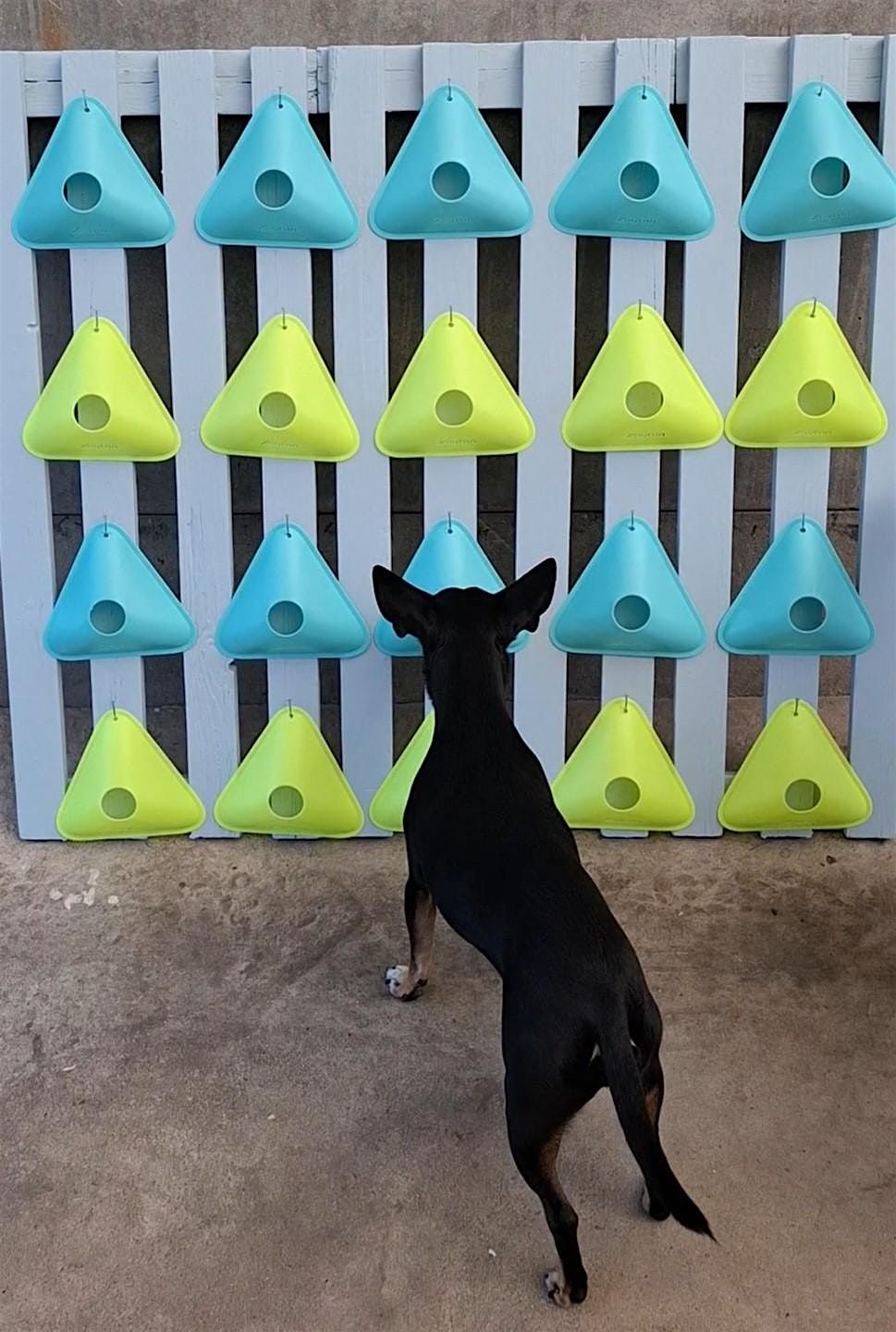 Deze snuffelactiviteit spreekt het natuurlijke speurinstinct van je hond aan, zonder dat hij overprikkeld raakt. Het is mentaal vermoeiend, geeft zelfvertrouwen en helpt honden die snel afgeleid of onzeker zijn om beter in hun vel te zitten.
