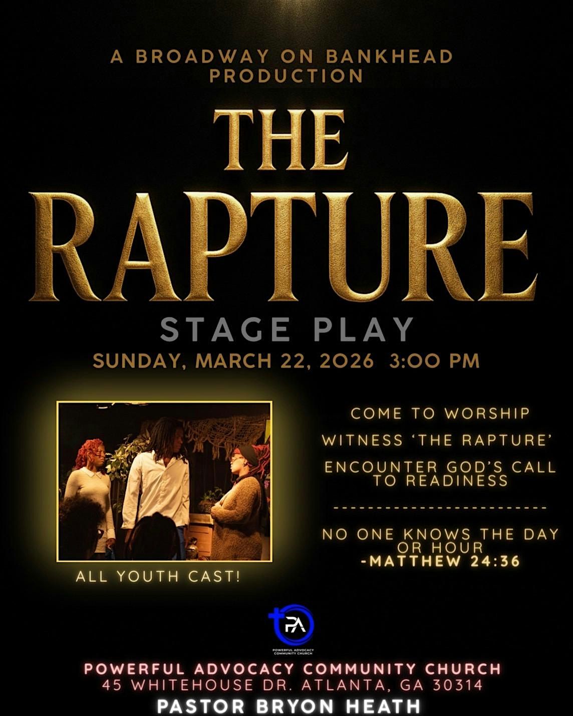 We invite you to join us for a special day of fellowship and inspiration at the Powerful Advocacy Community Church (PACC). Enjoy a unique opportunity to witness "The Rapture," a moving stage play performed by the nationally recognized production, Broadway on Bankhead.