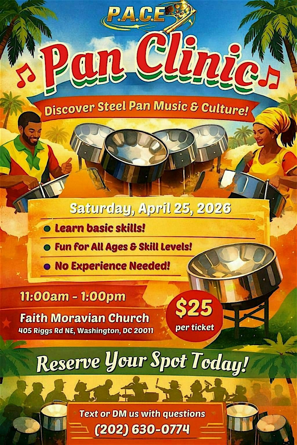 Join us for an uplifting day of rhythm, culture, and community at the Partnership for Academic and Cultural Excellence (PACE) Pan Clinic. Whether you’re a first-timer curious about steel pan music or already tapping your toes, this event welcomes you to explore, learn, and feel the beat of the steel pan.