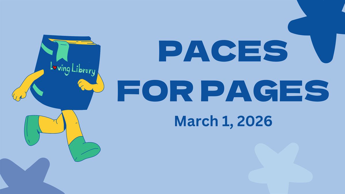 Loving Library will be hosting our annual fundraising event on March 1st called "Paces for Pages." Kids, grownups, pets and all are invited to enjoy our fun run (or walk) with food ventors, music, activities, raffles and more!