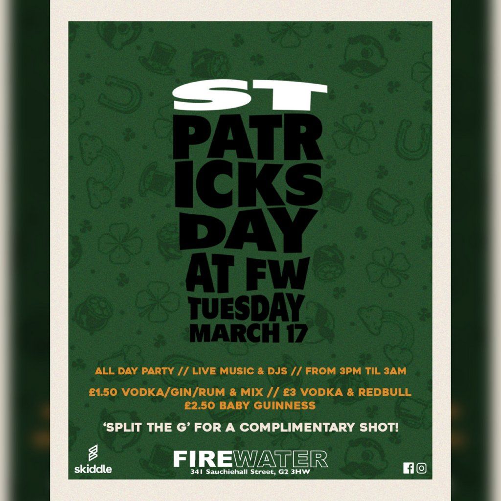Join us Tues 17th for a Sauchiehall Street St Patricks Day special!Live music, £1.50 spirit mixers and a complementary shot if you split the G!