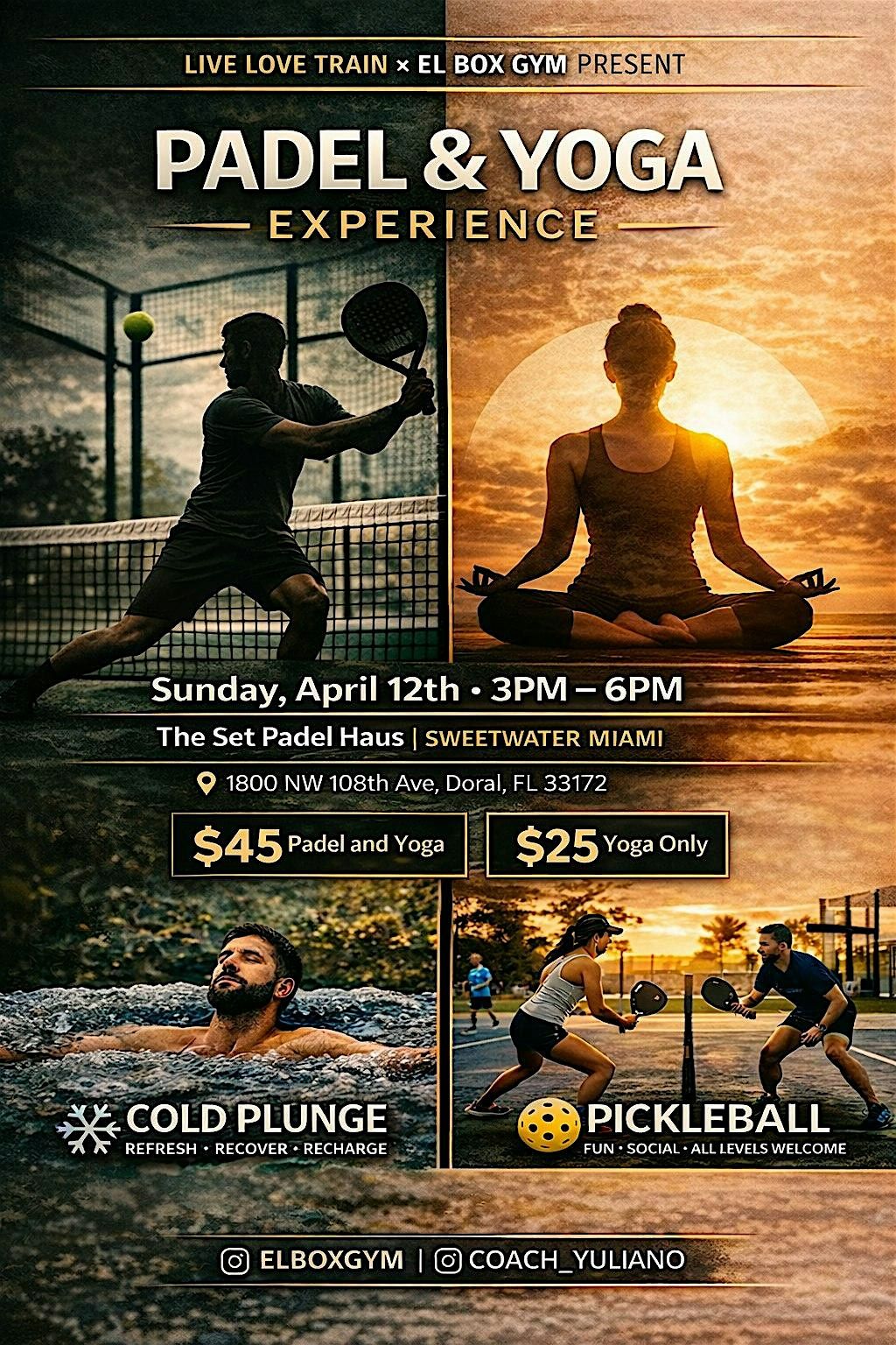 Elevate your weekend with the perfect mix of movement and recovery.Enjoy padel, yoga, cold plunge, recovery therapy sessions, and picklebal