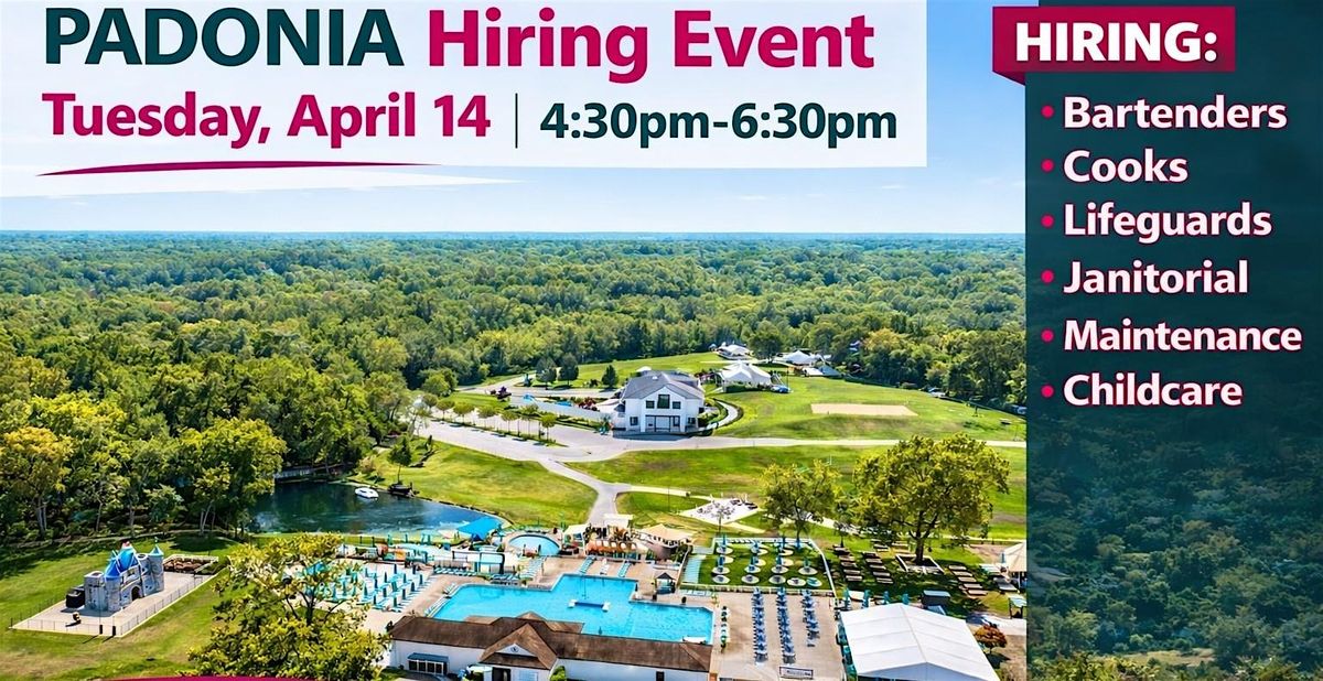PADONIA Hiring Event: Bartenders, Cooks, Janitorial, Maintenance, Childcare Center Teachers & Staff. Email [email protected]About this Event