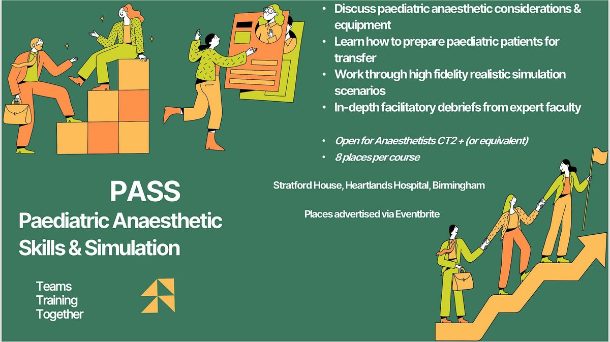 Join us for an exciting hands-on learning experience at the Birmingham Heartlands Hospital! The PASS Course is designed to enhance your paediatric anaesthetic skills through interactive simulations and practical exercises. Whether you're a seasoned professional or just starting out, this event is perfect for anyone looking to improve their skills in a supportive environment. Don't miss this opportunity to network with peers and learn from experts in the field. Sign up now for an unforgettable experience!