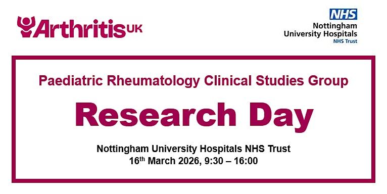 Welcome to the Paediatric Rheumatology Research Day! Join us at the Postgraduate Education Centre (underneath the QMC Tram Stop) on March 16, 2026 at 9:30 AM.