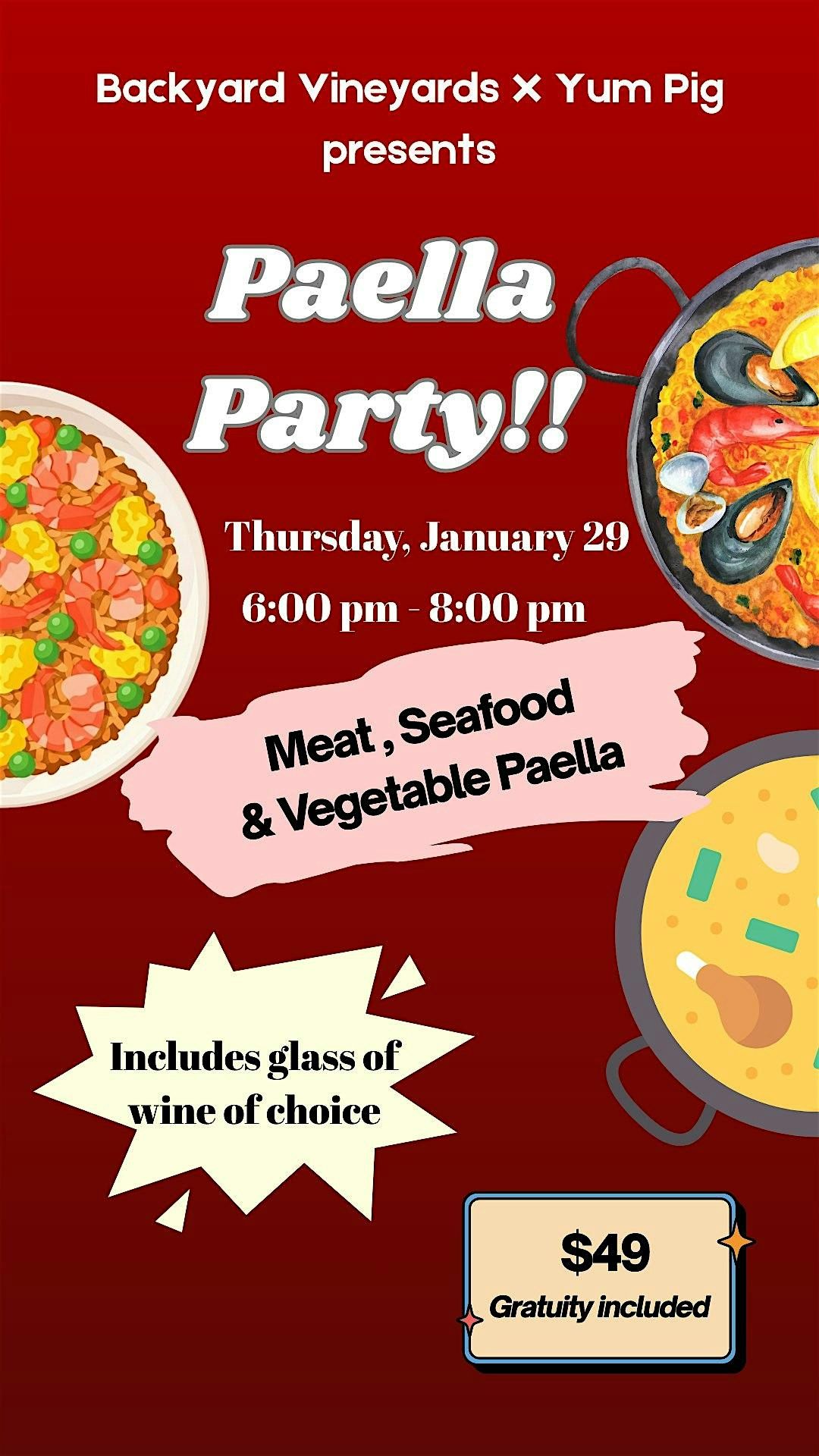 We’re throwing a Paella Party and you’re invited! Join us for a festive evening centered around shared plates, great wine, and good company. The night will feature party-sized paella dishes from Yum Pig, including a savory meat paella, a vegetarian paella, and a seafood paella, all designed for sharing and enjoying together.